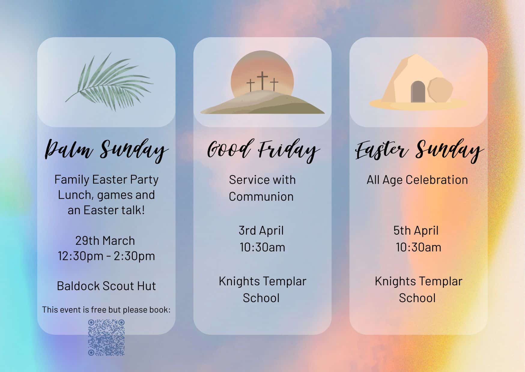 We meet every Sunday morning at Knights Templar School in Baldock at 10:30am. Our evening service is at Letchworth Free Church Hall in Letchworth at 6:00pm. Please do come and join us. We would love to see you!