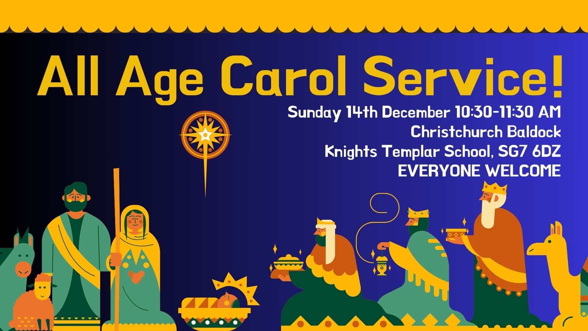 Knights Templar School Park Drive, Baldock, United KingdomJoin us for our Christmas Service as we celebrate the birth of Jesus Christ. This is an all age service and will be a slightly shorter service to allow for the follow on Christmas celebrations at home.